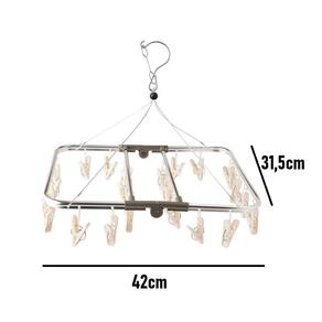 Prático, compacto e eficiente, o Varal Dobrável com 24 Pregadores é ideal para quem busca otimizar espaço na hora de secar roupas. Feito com estrutura resistente em aço e plástico, ele conta com diversos pregadores fixos, perfeitos para pendurar meias, roupas íntimas, peças leves e delicadas.Seu design suspenso permite pendurar em varais tradicionais, cordas, portas ou suportes, garantindo ótima circulação de ar e secagem mais rápida. Além disso, o modelo é dobrável, facilitando o armazenamento quando não está em uso.Características:Estrutura em aço e plástico resistenteModelo suspenso com gancho de fácil fixaçãoIdeal para meias e roupas pequenasDobrável, ocupa pouco espaçoLeve, prático e fácil de transportarComposição: Alumínio e plásticoMedidas aprox.: 31,5cm x 42cmPerfeito para apartamentos, lavanderias compactas e para quem precisa de praticidade no dia a dia!Itens da embalagem:1 varal com 24 prendedores Marca: Não Informado
