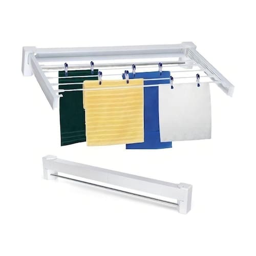 Varal Mágico Parede Retrátil Dobrável 5 Varetas 70cm Cor - Branco Solução perfeita para quem precisa otimizar o espaço na lavanderia, sacada, banheiro ou qualquer ambiente compacto. Com design dobrável e retrátil, ele se fixa na parede e pode ser aberto ou fechado conforme a necessidade, proporcionando praticidade no dia a dia sem comprometer o espaço disponível. Com 70 cm de largura e 5 varetas resistentes, oferece um excelente espaço para secar roupas, toalhas, peças íntimas e roupas leves. Seu sistema retrátil permite que, quando não estiver em uso, o varal seja dobrado junto à parede, ocupando praticamente nenhum espaço, ideal para apartamentos, áreas pequenas ou lavanderias multifuncionais. Fabricado com materiais duráveis e estrutura leve, o varal é fácil de instalar e combina funcionalidade com design discreto. Um aliado prático e inteligente para manter suas roupas secando com organização e eficiência. Acompanha parafusos e buchas. Especificações: Medidas: Aberto: 70cm x 10,5cm x 37cm / Fechado: 70cm x 10,5cm x 5cm. Material: Aço inoxidável e ABS Suporta até 5kg Peso: 1,200 Kg Cor: Branca