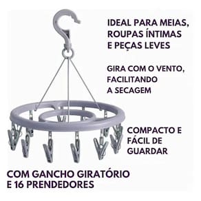 O Varal Multiuso 16 Pregadores Preto é a solução prática e funcional para quem busca otimizar espaço e manter as roupas sempre organizadas. Com design redondo e retrátil, ele é ideal para secar peças menores como roupas íntimas, meias, cuecas, calcinhas, lenços e peças delicadas, oferecendo mais praticidade no dia a dia. Fabricado em material resistente e durável, o varal conta com 16 pregadores firmes, que garantem a fixação das roupas sem deixá-las escorregar. Seu formato compacto permite ser em apartamentos, casas, lavanderias e áreas com pouco espaço, facilitando a rotina de quem precisa de praticidade. Além de funcional, seu acabamento em cor preta traz discrição e elegância, combinando com qualquer ambiente. O sistema retrátil facilita o manuseio e o armazenamento quando não estiver em uso, ocupando o mínimo de espaço possível. Benefícios e Diferenciais: Compacto e retrátil, fácil de guardar. Ideal para roupas íntimas, meias, cuecas, calcinhas e peças pequenas. 16 pregadores resistentes para maior segurança. Formato redondo que distribui melhor as peças. Perfeito para ambientes pequenos, como apartamentos e lavanderias. Material leve, prático e durável. O Varal Multiuso 16 Pregadores Preto é indispensável para quem valoriza praticidade e organização no cuidado das roupas. Marca: Não Informado Ean: 7898282402956
