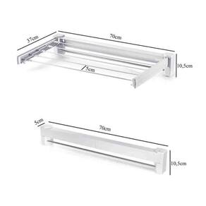 Com suas 5 varetas, esse varal é capaz de suportar até 5kg de roupas, garantindo uma secagem eficiente. Sua lateral dobrável permite que ele seja facilmente fechado quando não estiver em uso, ocupando praticamente nenhum espaço na parede e proporcionando um efeito sofisticado ao ambiente.