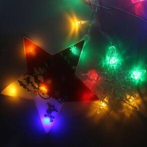 10 Estrelas: 5 Grandes Com Desenho Natalino e 5 Pequenas trasparentes;