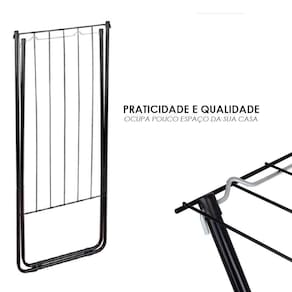 Otimize o espaço e garanta praticidade com o Varal de Chão Portátil. Adquira o seu agora e mantenha suas roupas sempre bem estendidas!Procurando por praticidade e qualidade em um varal de chão portátil? Conheça o Varal de Chão Portátil na cor preta. Com um design moderno e compacto, este varal é perfeito para quem busca otimizar o espaço em casa sem perder em qualidade. Sua fácil montagem o torna uma escolha conveniente na hora de estender as roupas, e sua característica retrátil o torna ideal para guardar, cabendo em qualquer cantinho da sua casa. Feito de material de alta qualidade, este varal é resistente e suporta até 10kg sem risco de quebrar.