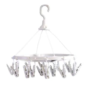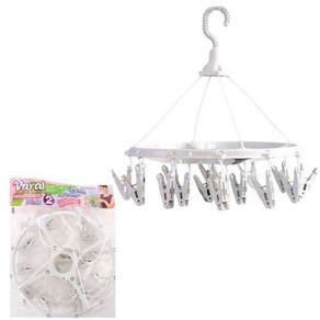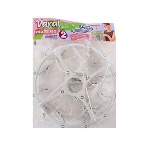 Varal redondo multiuso. Contém um varal e dezesseis prendedores. Para você que possui pouco espaço em sua casa ou apartamento. Prático e fácil de usar. Dimensões Aproximadas (CxLxA): 34x34x37cm.