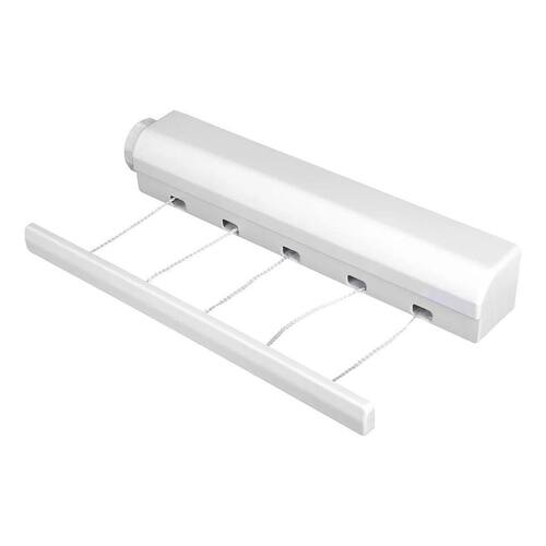 Transforme a tarefa de secar roupas em algo prático e eficiente com o varal automático 5 cordas retrátil de parede. Este produto oferece cinco cordas retráteis e um mecanismo de recolhimento automático, perfeito para quem busca praticidade, organização e sofisticação. Acompanha 6 ganchos, perfeito para pendurar toalhas, escovas, esponjas, o que for necessário. E o varal pode ser utilizado com ou sem os ganchos, de acordo com a sua necessidade. Feito com materiais resistentes e duráveis, este varal retrátil de parede é a escolha ideal para quem quer economizar espaço e tempo na hora de cuidar da roupa. O Varal possui um trava para evitar que feche automaticamente. Após, puxar o compartimento com as cordas, empurre a trava localizada na lateral do varal retrátil. O varal pode ser esticado até 3 metros e 75 centímetros. Característica: Varal Retrátil Compacto Economiza Espaço Fechamento Automático Fácil Instalação Trava Material: Polipropileno e Nylon Cor: Branco Peso Suportado: aproximadamente 3 Quilos em cada corda Dimensões Aproximadas: Comprimento do Varal: 37cm Largura: 6cm Comprimento da corda varal esticado: 3 metros e 75 centímetros Espaço entre as cordas: 6 centímetros Conteúdo da Embalagem: 1 Varal Retrátil 6 Ganchos 1 Kit de Instalação 3 Meses de Contra Defeito de Fabricação Marca: Não Informado Ean: 7890185137423