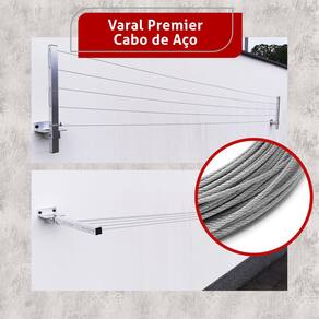 Varal Roupa Alumínio Articulado cabo de aço até 4 MT Premier Varal fabricado por Home Varais. Empresa atuante a 12 anos no ramo de varais. O varal suporta 60 kg na cor Alumínio, acompanha 22 metros de cabo de aço 1.6 mm revestida com capa, suficiente para montar o mesmo com 4 metros entre as hastes. Acompanha buchas, parafusos, fabricado em alumínio NÃO ENFERRUJA . Produto COMPLETO, pronto para instalação. ACABAMENTO PREMIER Marca: Home Varais Modelo: articulado Cor: Branco Lugar de colocação: parede muro apartamento casa Materiais: Alumínio Cabo de Aço 1.6 mm Revestido com capa Kit: Buchas, Parafusos e acabamento de Parafusos É extensível: Sim Capacidade: 60 kg de 12 meses Marca: Não Informado Ean: 0602883730694