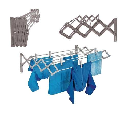 Especificações Gerais do Produto: Pronto para usar, acompanha um kit com parafusos para fixar na parede Tem capacidade para acomodar até 8 Kg ou 5,60 metros de roupas úmidas distribuídas uniformemente sobre suas varetas Sua estrutura é produzida alumínio, que garante sua durabilidade Como não enferruja é ideal para regiões litorâneas Pode ser fixado em uma parede na área externa de sua residência ou mesmo em uma área de serviço dentro de casa ou aparamento Permite que você o estenda e recoloque de volta em sua posição inicial, muito compacta e discreta Leve e durável, possui qualidade nos acabamentos