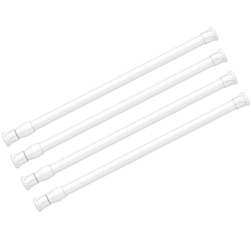 AIZESI Varões de cortina de tensão de mola haste de tensão curta (branco, 30,5 cm a 50,8 cm - 4 peças) - ?Introdução ao tamanho?Conjunto de 4 hastes de tensão de 30 a 50 cm de comprimento, com diâmetros de 10/13 mm. (Faixa de uso recomendada de 12 a 43 cm) - ?Firme antiderrapante?Construído a partir de materiais metálicos robustos e texturizados, esta haste de cortina de tensão possui extremidades de plástico e uma superfície pintada de branco. Oferece uma elasticidade forte e segura para estender o suficiente e suportar o peso, garantindo que você não precise se preocupar com escorregar ou cair. - ?Recursos de aplicação?A haste de tensão pequena é fácil de ajustar, não requer ferramentas, não precisa de perfuração e é resistente à ferrugem. - ?Ampla aplicação? Você pode ajustar o comprimento da haste como varão de cortina, varão de armário, cabide de casaco e sapateira. Também pode ser utilizado na geladeira e no armário do trailer para manter os objetos em ordem, as hastes de tensão carregam 3,3 Ib (aproximadamente) - ?Experiência de compra divina?A AIZESI se concentra em criar uma experiência de compra para o cliente. Se você não estiver satisfeito com nossos produtos, fornecemos garantia de devolução do dinheiro, para que sua compra não tenha preocupações. Se você tiver alguma dúvida, com nossa equipe de atendimento ao cliente. Nossa equipe de atendimento ao cliente on-line 24 horas por dia para responder às suas perguntas
