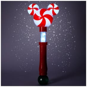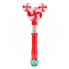 Venham todos, fiéis fãs do Mickey, e adicionem um toque fresco às celebrações de fim de ano com esta divertida varinha de bolhas. O design do ícone do Mickey é inspirado no popular doce de hortelã-pimenta vermelho e branco. O cabo transparente apresenta desenhos festivos e brilha com cores diferentes, enquanto o topo esculpido se ilumina.