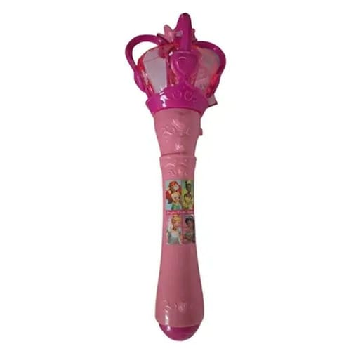 Design Temático: Decorada com cores vibrantes e detalhes das princesas, a varinha é ideal para completar fantasias de festas e brincadeiras.