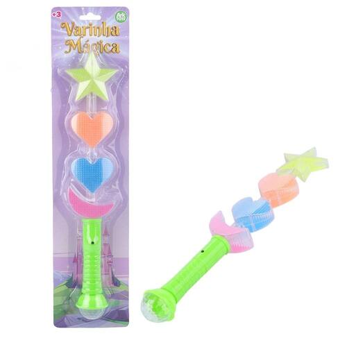 Varinha Mágica de Plástico com LUZ 37cm Col Especificações: Marca : ARK Tipo de material : Plástico Cores ou Estampa : Colorido Dimensões do Produto : 37 X 7 X 3 CM Dimensões da Embalagem : 46 X 7 X 3 CM Peso Bruto (Gramas) : 0.115 Utiliza 2x baterias AG13 (inclusas);