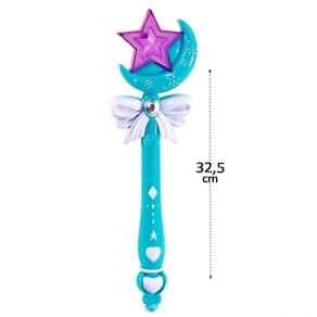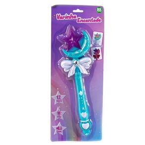 Varinha Mágica de Plástico com SOM e LUZ En Varinha Encantada com Luz Ideal para a diversão da criança; 12 opções de músicas;\nEspecificações Marca : ARK Tipo de material : Plástico e Componetes Eletrônicos Cores ou Estampa : Azul Bebê Dimensões do Produto : 32,5 X 9 X 4 CM Dimensões da Embalagem : 40,5 X 15,5 X 4 CM Peso Bruto (Gramas) : 0.130 Utiliza 2 pilhas AA (não inclusas);