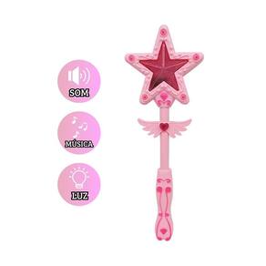 Varinha Mágica Rosa Estrela Princesa Divertida Luz E Som