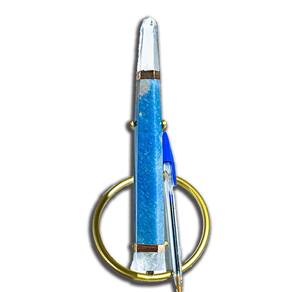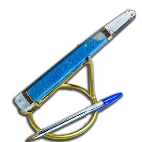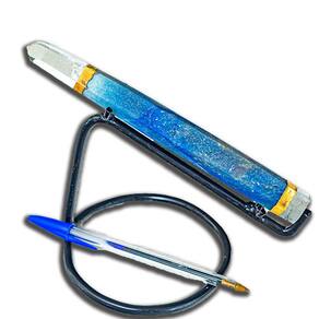 A base e a ponta de cristal adicionam um elemento de estabilidade e amplificação às energias do quartzo azul. A base, feita de cristal, atua como um ancoradouro, conectando-nos à terra e ajudando a equilibrar nossas energias durante o uso da varinha.