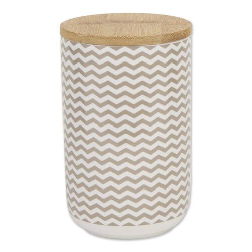 Vasilha de guloseimas Chevron Ceramic Bone Dry com tampa de bambu, lavável na bancada, mantenha as guloseimas para cães e gatos seguras e secas, 4x6,5, em pedra