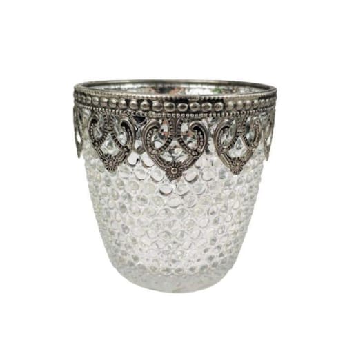 Vasinho Castiçal Prata 9x9x9cm Porta Vela Vaso Decoração Vem decorar, seja INIGUAL Uso: este lindo Castiçal, da Inigual Decor, na cor prata feito em vidro e detalhes em metal vão deixar seu ambiente muito aconchegante com a decoração romântica e ao mesmo tempo funcional. Essa peça é muito versátil, pois pode ser usada como castiçal mas também como vaso decorativo colocando uma planta artificial. Assim terá 2 composições para uma mesma peça MEDIDAS:Altura: 9,0cm / Largura: 9,0cm / Profundidade: 9,0cm / Peso: 300g MATERIAL:Vidro e ferro CONTEÚDO DA EMBALAGEM:1 Castiçal Vaso ATENÇÃOOBS. As plantas e folhagens não estão incluídas no anúncio, são meramente ilustrativas.