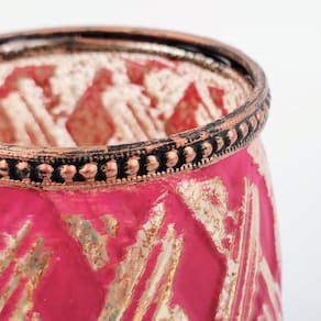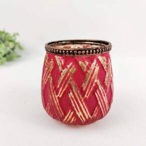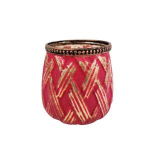 Vasinho Castiçal Rosa 10X10Cm Trama Dourado Porta Vela Vaso Uso: este lindo Castiçal, da Inigual Decor, feito em vidro e detalhes em relevo na cor Rosa e Dourado vão deixar seu ambiente muito aconchegante com a decoração romântica e ao mesmo tempo funcional. Essa peça é muito versátil, pois pode ser Utilizado como Porta Vela mas também como vaso decorativo colocando uma planta Artificial. assim terá 2 composições para uma mesma peça Medidas: Altura: 10,0cm / diâmetro: 10,0cm / peso: 140g Material: vidro e metal Atenção Obs. as folhagens arranjo não estão inclusas nesse anúncio. Ean: 7899735367181