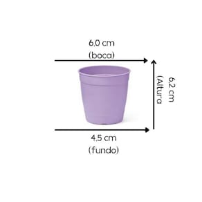 Vaso Aquarela Mini (0,20L) Lilás NUTRIPLAN Descrição * Super leve e resistente, o vasinho colorido para plantas é fabricado em material plástico. * Ao utilizar o pratinho na parte superior o vaso se transforma em um lindo pote. * Vem com a marcação para facilitar os furos (não vem furado para que você possa usar como cachepô ou pote). * Em lindos tons, clarinhos, ideais para combinar com as mais diversas flores. Características * Altura: 6,2 cm * Largura boca: 6,0 cm * Largura do fundo: 4,5 cm * Cor: Lilás Claro * Material: Plástico * Ref: 6101801-40
