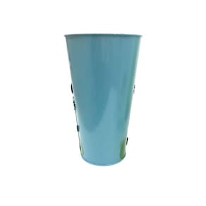 Este belo vaso/balde de metal é um enfeite para jardim, casa, quintal, varanda, etc. Ao mesmo tempo que serve par guardar coisas dentro, como flores, jornais, também tem um design arrojado, com flores e joaninhas em relevo na frente, pintados de maneira colorida. A durabilidade do material é boa por ser feita em ferro, com bela pintura.