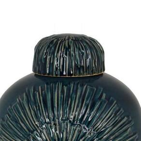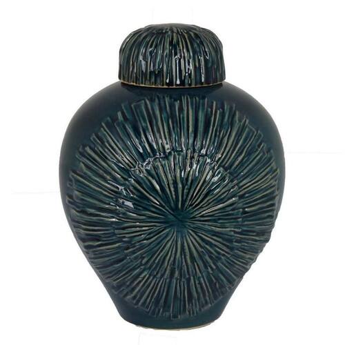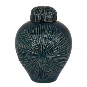 Vaso de flores Benjara Accent com tampa, cerâmica azul escuro de textura rica, 13 polegadas