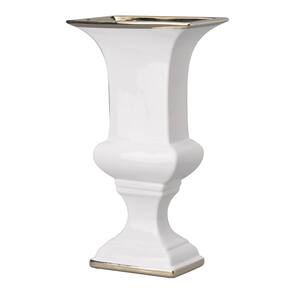 Vaso decorativo de cerâmica Benjara de 14 polegadas, urna artística torneada, borda branca e dourada