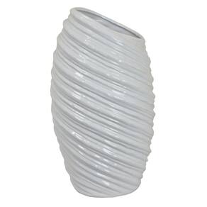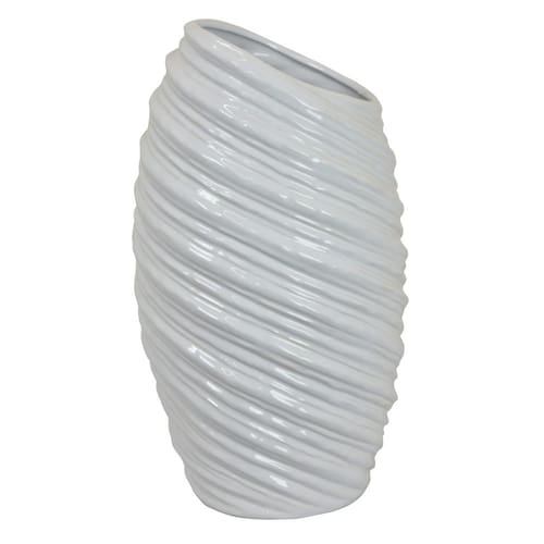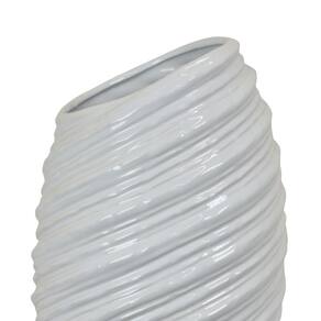 Vaso moderno Benjara Avery Tall, design em espiral angular, cerâmica branca de 17 polegadas