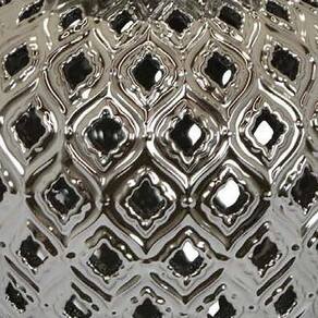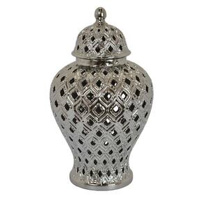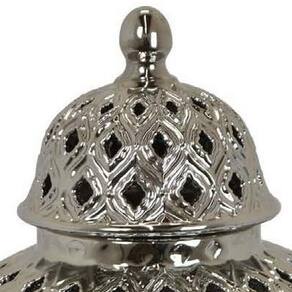 Jarra decorativa Benjara Deni de 18 polegadas, design de treliça perfurada e esculpida, tampa, prata