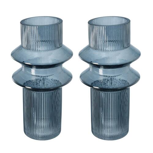 Conjunto Benjara Rae de 2 vasos de vidro, cilindros altos e redondos, azuis e