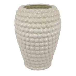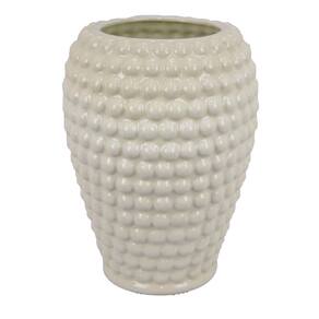 Vaso redondo Benjara Rozie com design de textura de bolha, cerâmica branca de 15 polegadas