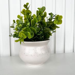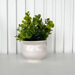 Decoração enfeite rack estante sala vaso cachepot branco estilo granilite em cerâmica.