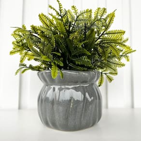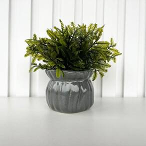 Material do item: Cerâmica. Cor Predominate: Cinza. Planta artificial acompanha o vaso.