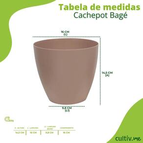 Vaso Cachepot Bagé (16x15 cm) Malva Vintage VASART Descrição * Os vasos da coleção Bagé possuem variedades de cores e tamanhos.* São perfeitos para o cultivo de suculentas e outras plantas de pequeno porte. * Os vasos da Vasart são leves, modernos e resistentes. * Acabamento e design incrível. * Pode ser utilizado em ambientes externos e internos. * Ótima qualidade e resistência. Características * Largura: 16 cm * Altura: 14,5 cm * Base: 9,8 cm * Capacidade: 2 Litros * Peso: 90 g * Cor: Malva Vintage * Furo de drenagem: Sem furo * Material: Plástico polipropileno
