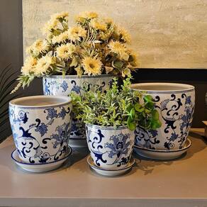 Design Clássico e Atemporal: Padrão floral em azul e branco, inspirado na porcelana tradicional. Material Nobre: Fabricado em porcelana de alta qualidade, garantindo beleza e durabilidade. Versatilidade Decorativa: Ideal para plantas, flores, ou como peça decorativa avulsa. Ponto Focal Elegante: Tamanho e design que garantem destaque no ambiente. Beleza e Funcionalidade: Combina a arte da porcelana com a utilidade de um cachepot.
