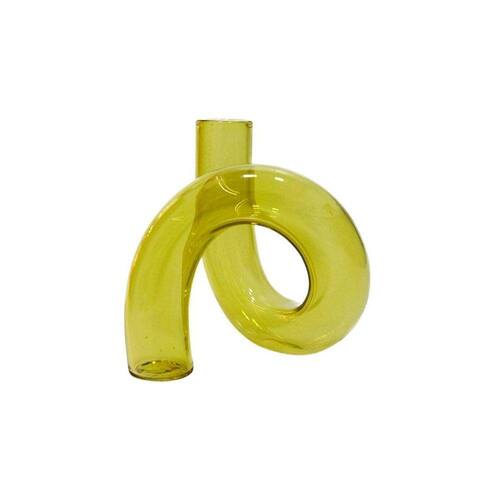 Vaso Castiçal em Vidro Amarelo Uma peça versátil, pode ser usada como vaso, colocando uma flor ou como castiçal usando uma vela castiçal.