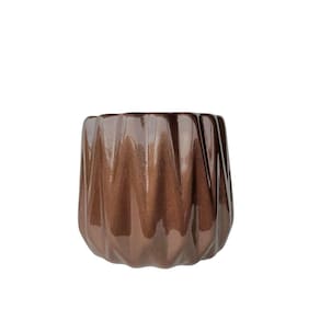 Decoração sala rack aparador vaso centro de mesa médio de cerâmica moderno trabalhado alto relevo na cor cobre brilho decoração luxo.