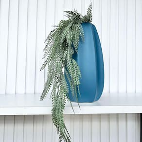 Decoração sala rack aparador vaso centro de mesa grande de cerâmica moderno trabalhado alto relevo na cor azul fosco decoração luxo.