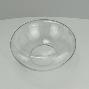 CENTRO DE MESA Altura: 12,7 cm Largura: 25,5 cm Profundidade: 25,5 cm Peso: 0,92 Kg Diâmetro da Base: 12 cm Material: Vidro Cor: Transparente