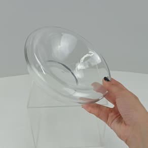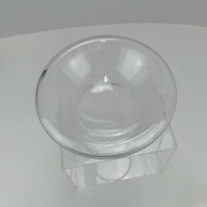 CENTRO DE MESA Altura: 7,4 cm Largura: 19 cm Profundidade: 19 cm Peso: 0,54 Kg Diâmetro da Base: 9,5 cm Material: Vidro Cor: Transparente