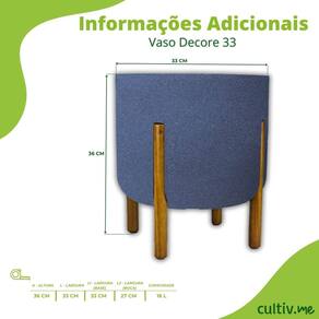 Vaso Cilíndrico Decore 33 (16L) Cor Iron JAPI Descrição * O vaso cilíndrico Decore 33 é pensado para ambientes internos. * Valoriza o visual e ajuda a compor a decoração. * Combina bem com estilos escandinavo, minimalista e moderno. * Pés em madeira maciça (pinus) * Ótimo para decoração com um charme extra, permitindo a composição com plantas pendentes, como samambaias, jiboias, lambaris, heras, etc.