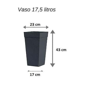 Vaso Coluna Quadrado Rattan Preto 17,5 litros Para Plantas E Flores