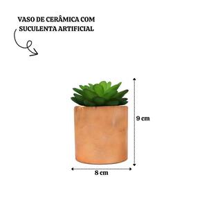 Vaso em cerâmica com suculenta artificial é ideal para decoração de ambientes diversos. Pode ser utilizado em aparadores, racks, centro de mesa entre outras utilidades.