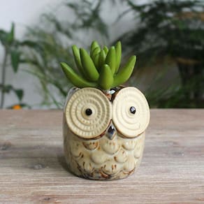 Material: cerâmica Peso: 500 g Tamanho: 17 x 6,8 x 8,2 cm 🦉 Forma encantadora de coruja — Design criativo inspirado em corujas com olhos grandes exagerados e texturas de penas, adicionando um toque decorativo exclusivo a qualquer espaço. Material cerâmico durável — Feito de cerâmica de alta qualidade com acabamento vidrado rústico, resistente e fácil de limpar, adequado para uso em plantio a longo prazo. Tamanho decorativo compacto — Medindo 17x6,8x8,2 cm, ideal para plantar suculentas, cactos ou ervas, cabendo bem em mesas, parapeitos de janelas ou prateleiras. Vasos de plantio versáteis — perfeitos para decoração de casa, escritório, varanda ou jardim; combina uso prático com charme ornamental. Acabamento rústico feito à mão — Cada vaso de flores apresenta variações naturais de esmalte, criando um visual retrô feito à mão, cheio de personalidade e exclusividade.