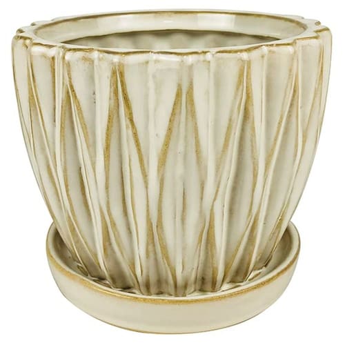 Vaso de cerâmica interno Garden & Home Cream de 5,5 polegadas com pires anexados e orifício de drenagem para todas as plantas domésticas, ervas, flores, plantas suculentas de interior, presentes para mamãe