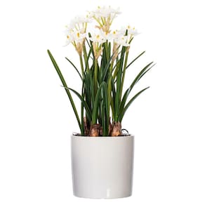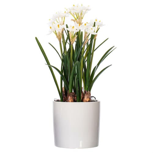 - Este narciso branco adiciona uma sensação de boas-vindas a qualquer cômodo. Mede 42 cm de altura x 30 cm de largura x 30 cm de profundidade