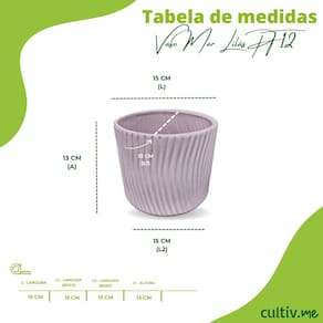 * Material : Cerâmica * Altura:13cm * Largura:15cm * Comprimento:15cm * Medida de boca:13cm * Medida da base:15cm * Furo de drenagem: Com furo e tampa * Ambientes: Interno e externo