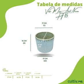 * Material : Cerâmica * Altura:15cm * Largura:17cm * Comprimento:17cm * Medida de boca:15cm * Medida da base:17cm * Furo de drenagem: Com furo e tampa * Ambientes: Interno e externo