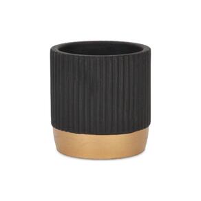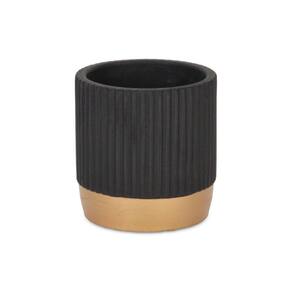 Vaso de cerâmica redondo Cheungs Aurone com base com acabamento dourado - Pequeno - Preto