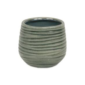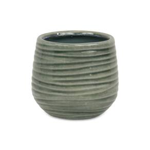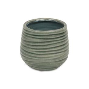 Vaso de cerâmica Cheungs Fairloam redondo com padrão forrado de ondas curvas - Médio - Verde