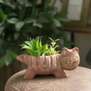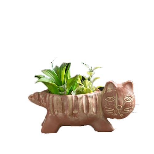 Material: cimento Peso: 1000 g Tamanho: 21x8x11 cm Design abstrato de gato — Vaso exclusivo em forma de gato com detalhes de inspiração tribal, combinando arte moderna com charme divertido para uma peça de decoração de destaque. Material de cimento durável — Feito de cimento forte, este vaso de plantas garante durabilidade e estabilidade duradouras para uso interno e externo. Tamanho prático — Medindo 21x8x11cm e pesando cerca de 1000g, adequado para suculentas, cactos, ervas ou outras pequenas plantas domésticas. Toque artístico e decorativo — Adiciona uma estética tribal africana exótica, perfeita para casa, pátio, varanda, jardim ou mesa de escritório. Uso versátil — Funciona como um vaso funcional ou como uma escultura decorativa para aprimorar seu espaço de vida com criatividade e estilo.
