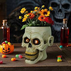 Material: Resina Peso: 800 g Tamanho: 20 x 20 x 21 cm Design realista de cabeça de caveira — Vaso de flores exclusivo com formato de caveira assustador e olhos brilhantes, perfeito para adicionar uma atmosfera assustadora de Halloween. Material de resina durável — Feito de resina de alta qualidade, robusto e resistente ao desbotamento, adequado para decoração interna e externa. Perfeito para suculentas e hortaliças — A ampla abertura do plantador se adapta a suculentas, ervas, cactos ou flores, tornando as exibições de vegetação mais criativas. Acento natalino versátil — ideal para festas de Halloween, casas mal-assombradas, varandas, jardins, desktops ou pátios, aprimorando a decoração gótica. Dimensões do produto — Mede 20x20x21cm, pesa 800g; vaso de tamanho grande que funciona tanto como porta-plantas funcional quanto como decoração de terror.
