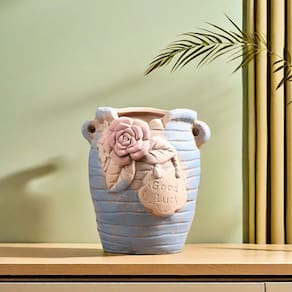 Material: cerâmica Tamanho: 8,5 x 8,5 x 13,5 cm Design de rosa romântica — apresenta um delicado detalhe de rosa e folha em relevo com a gravura “Boa Sorte”, tornando este vaso de cerâmica único e decorativo. Textura azul rústica — A superfície azul envelhecida com acabamento artesanal confere a este vaso uma estética vintage que complementa vários estilos de decoração. Construção durável em cerâmica — Feito de material cerâmico resistente, este vaso garante estabilidade, respirabilidade e uso duradouro para suculentas e plantas pequenas. Forma vertical compacta — Medindo 8,5 x 8,5 x 13,5 cm, seu design de corpo alto o torna ideal para desktops, parapeitos de janelas, varandas ou pequenos jardins. Plantador decorativo versátil — Adequado para suculentas, cactos, ervas ou flores pequenas, aprimorando o escritório, a casa ou os espaços ao ar livre com um toque criativo.